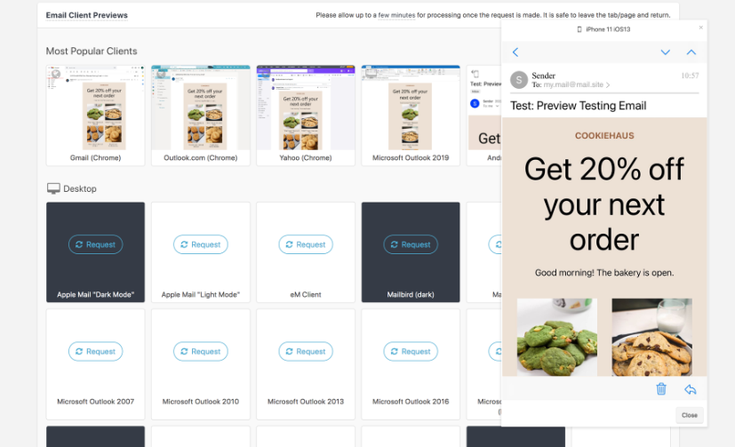 Client Previews – Unlimited real-device email rendering previews across clients and platforms.