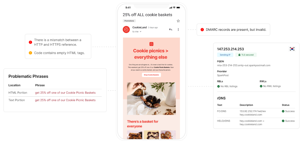 Deliverability Analysis – AI-powered testing of content, layout, infrastructure, domain, and IP.