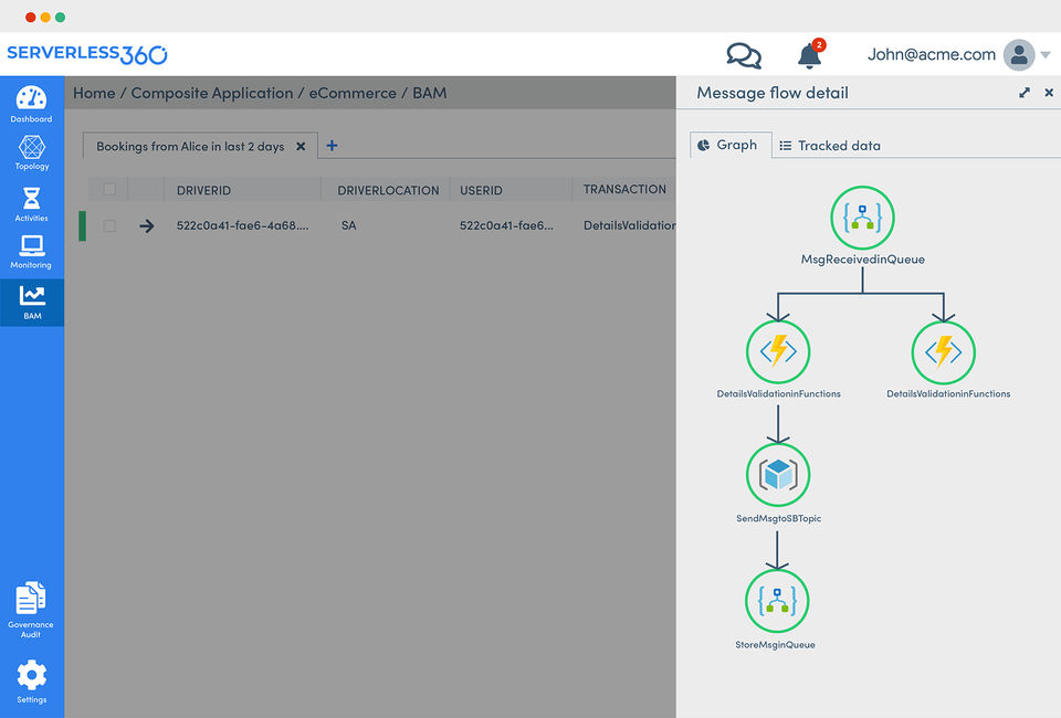 Serverless360 is the Application Performance Monitoring (APM) Tools used for the below functionalities.