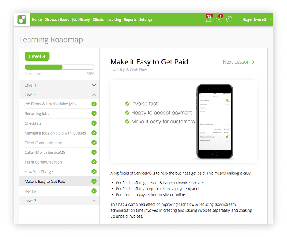 ServiceM8 provides Help Guides,Blogs,Video Guides for the software training.
