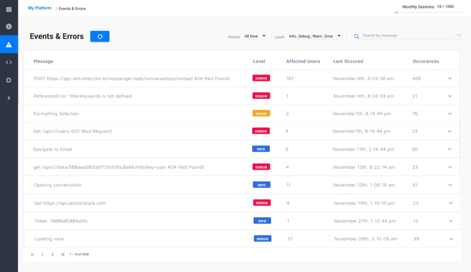 SessionStack is allowed 0 Days Free Trial.