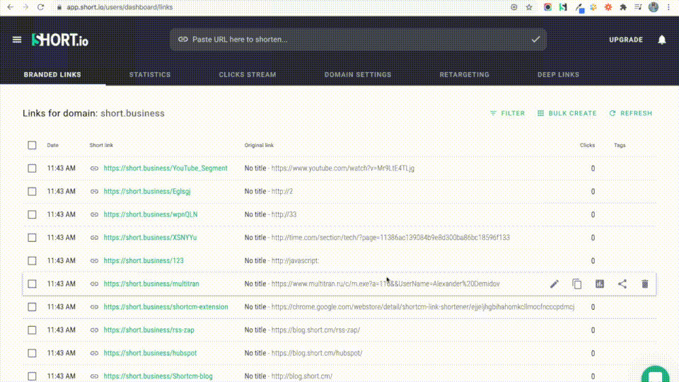 Short.io is the URL Shorteners used for the below functionalities.