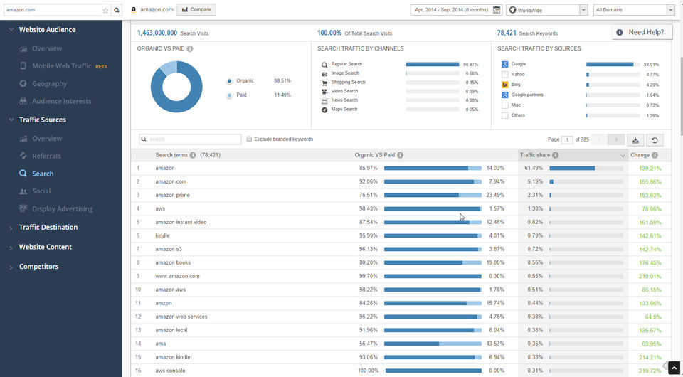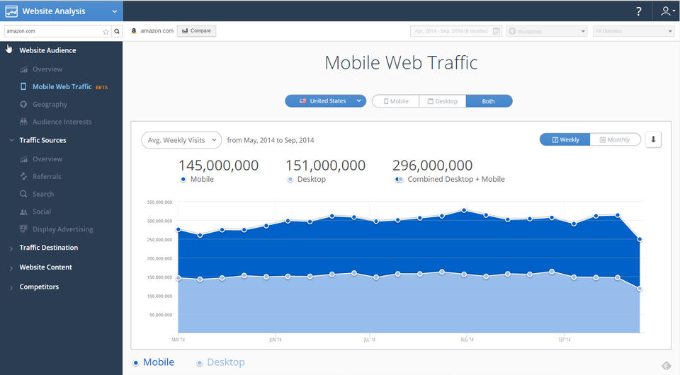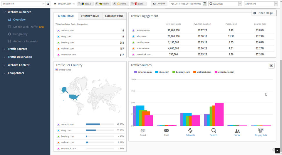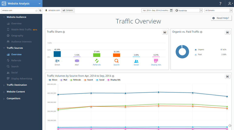 SimilarWeb Pro is the Web Analytics Software used for the below functionalities.