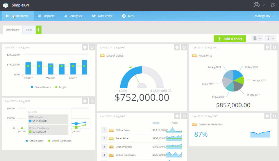 SimpleKPI is the Business Intelligence Software used for the below functionalities.