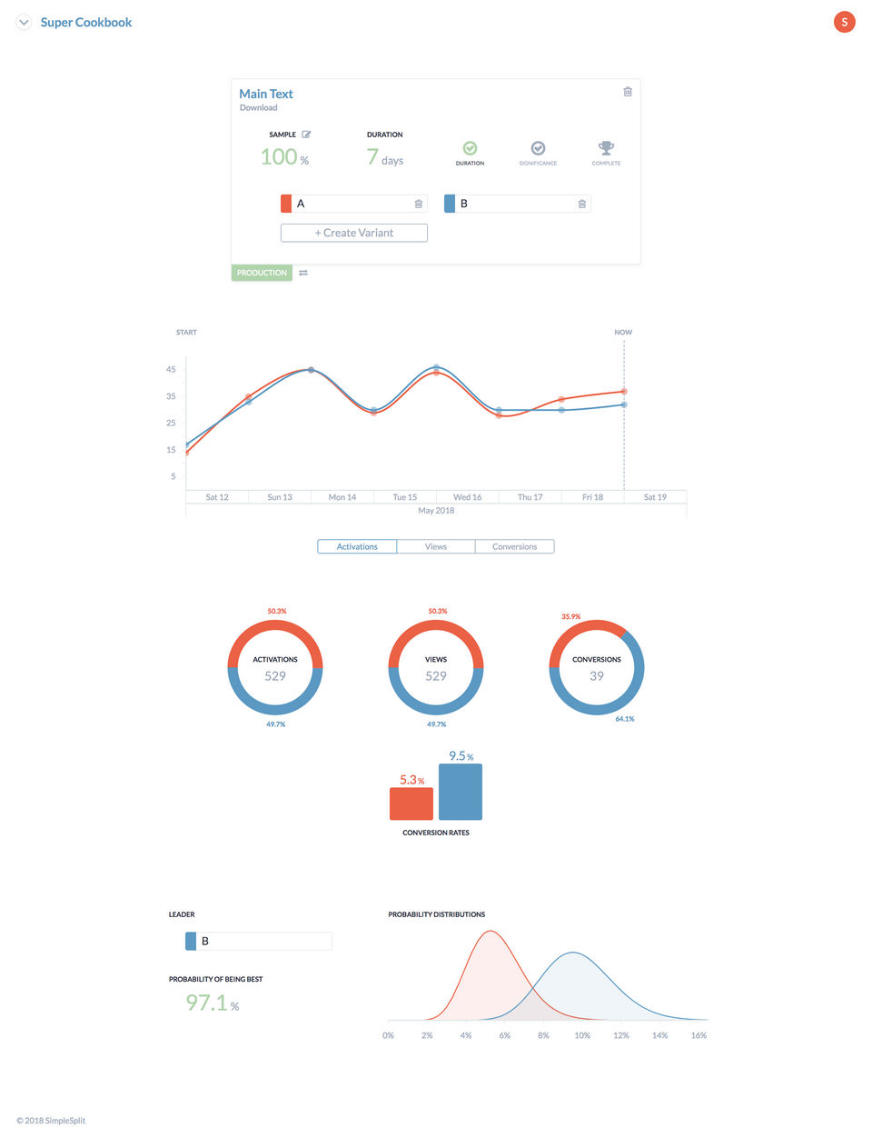 SimpleSplit is the AB Testing Software used for the below functionalities.