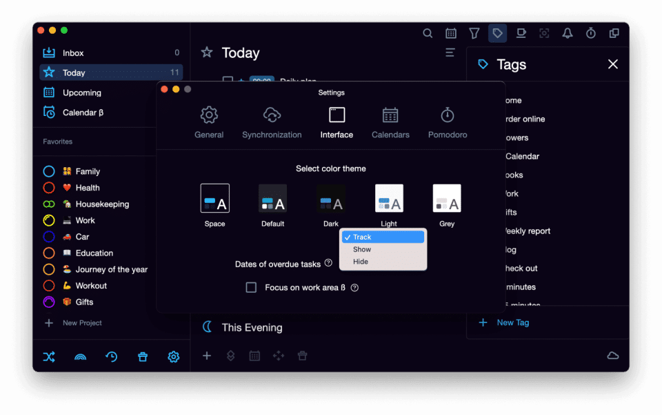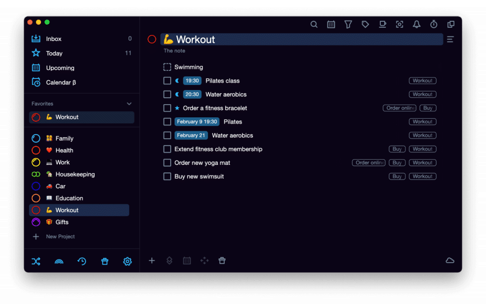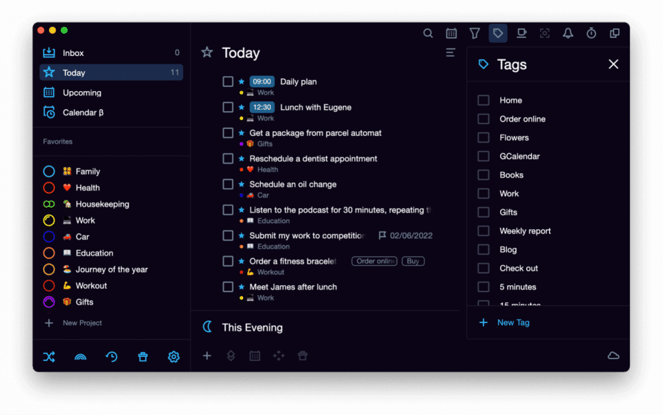 - Colored task tags and subtags