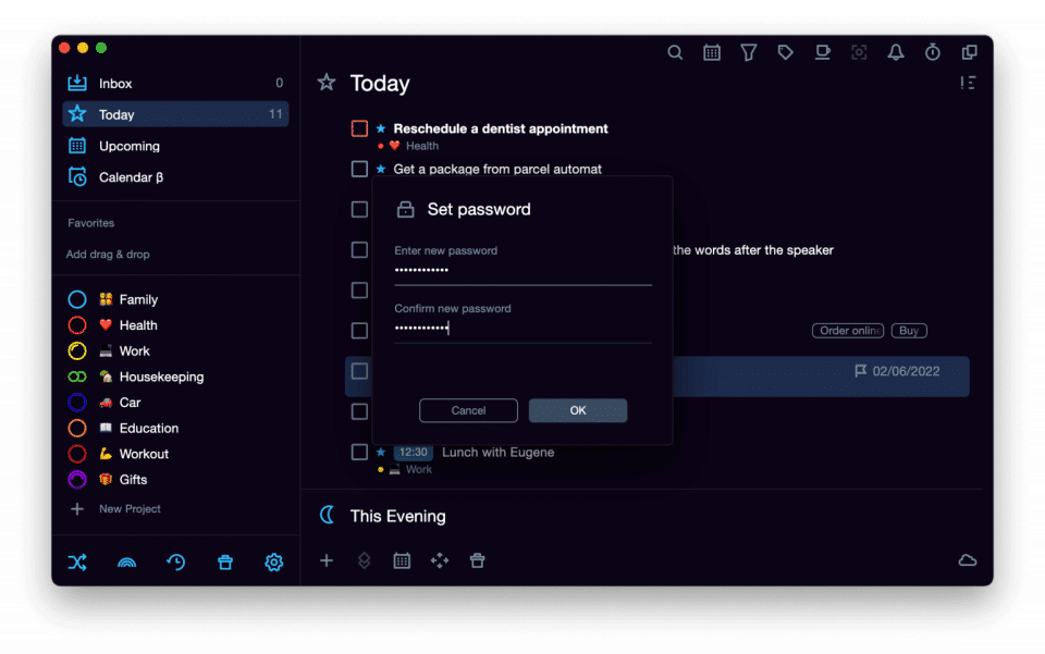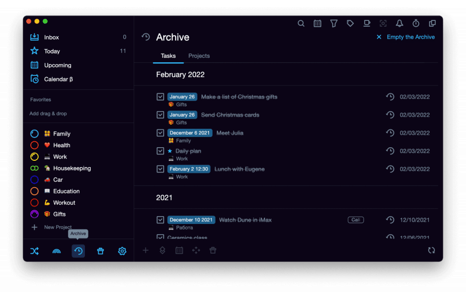 - Archive of tasks and projects
