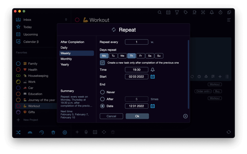 - Recurring tasks