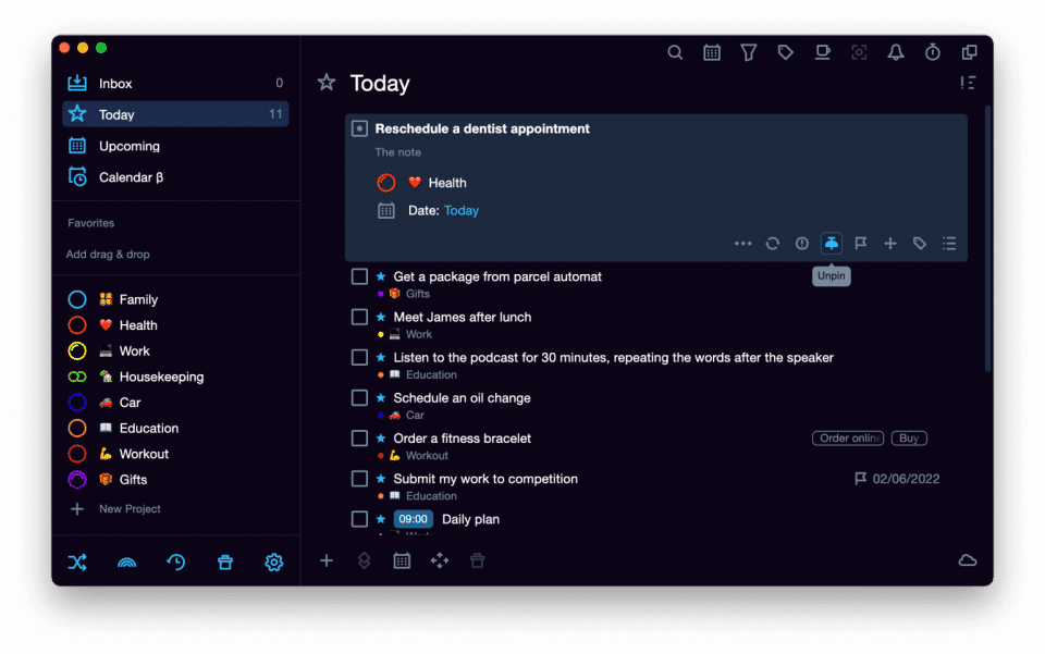 - Priorities and pinned tasks