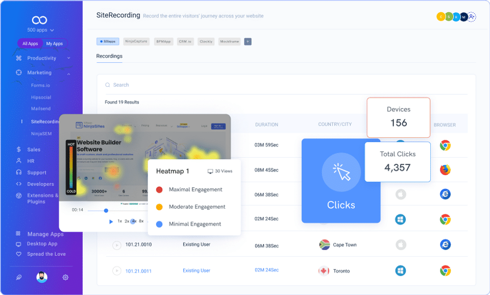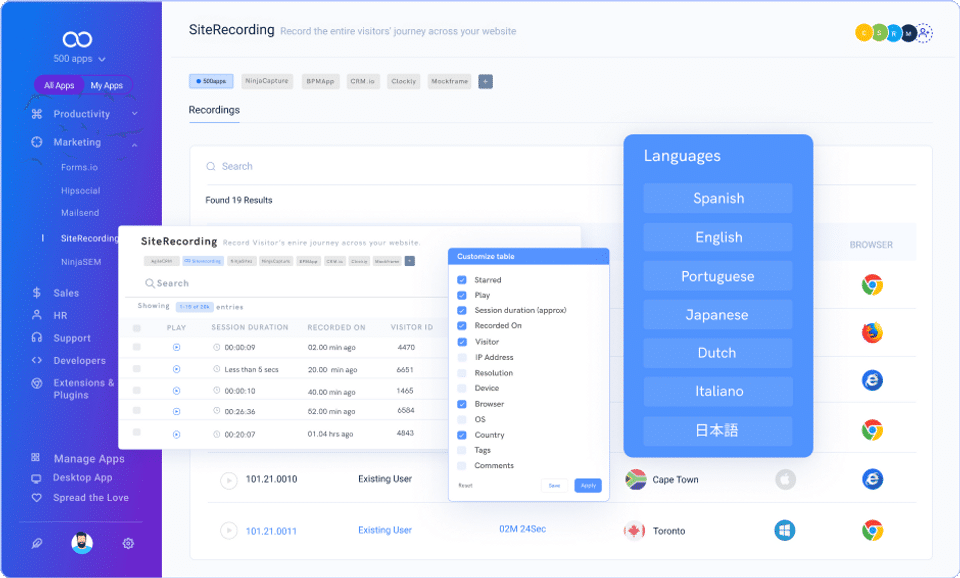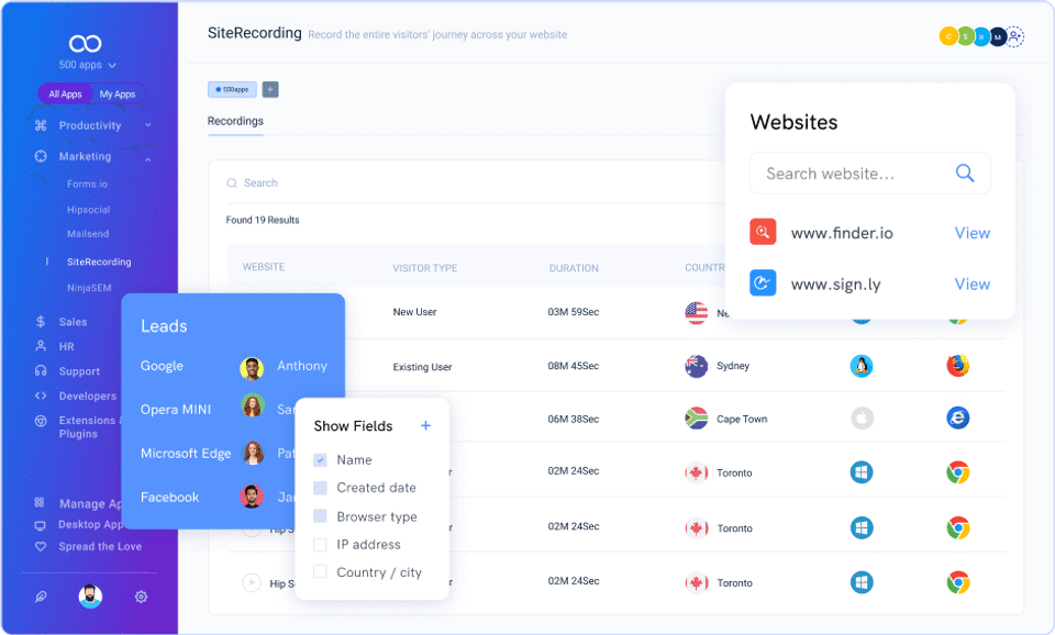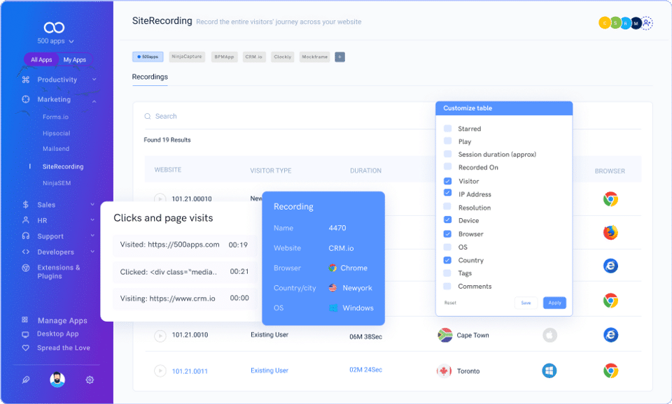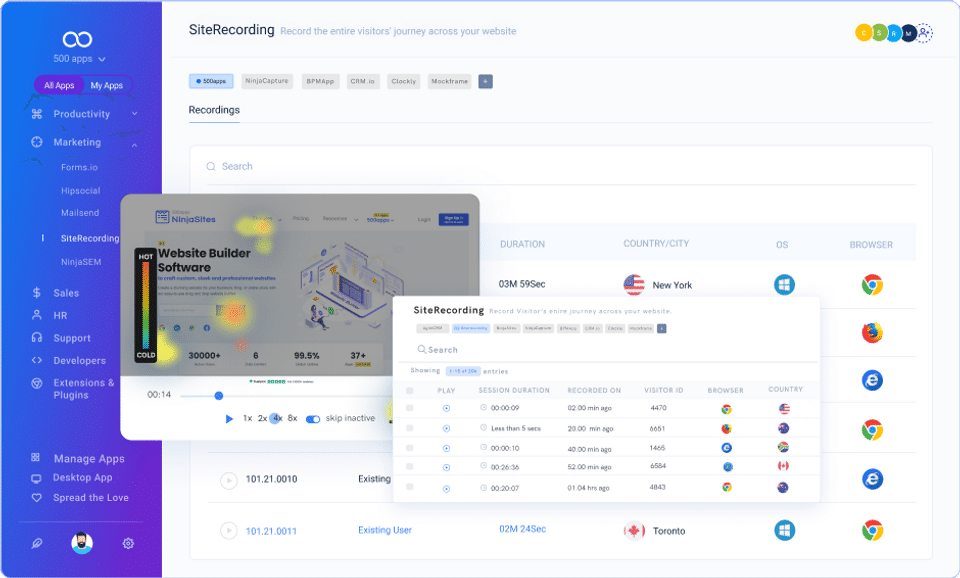 SiteRecording by 500apps is the Screen Recording Software used for the below functionalities.
