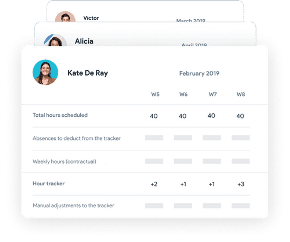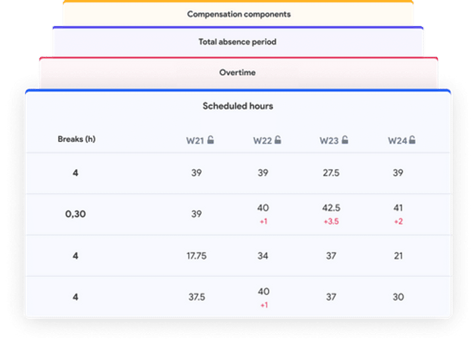 - Follow the evolution of your employees' hours