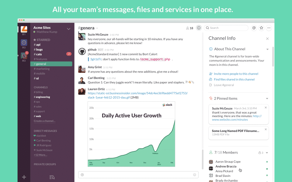 - Secure collaboration with outside organizations or guests from within Slack