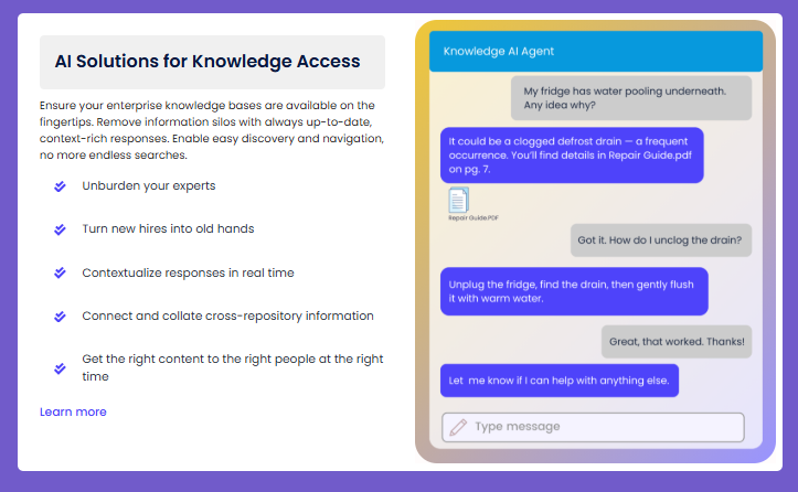 SmartBots.ai seamlessly integrates with enterprise ecosystems through pre-built connectors and APIs, linking with CRMs, ERPs, HR platforms, ticketing systems, and data lakes. It ensures multichannel availability so users can engage via web chat, mobile apps, voice assistants, or email. By offering a consistent and personalized interaction experience across platforms, it enhances employee satisfaction and operational efficiency.