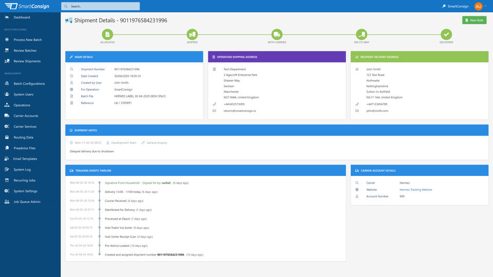 - Shipping Management