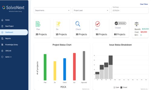 Solvonext PDCA is a smart, scalable problem-solving software for manufacturers that transforms your entire PDCA (Plan-Do-Check-Act) cycle into a streamlined digital experience.
