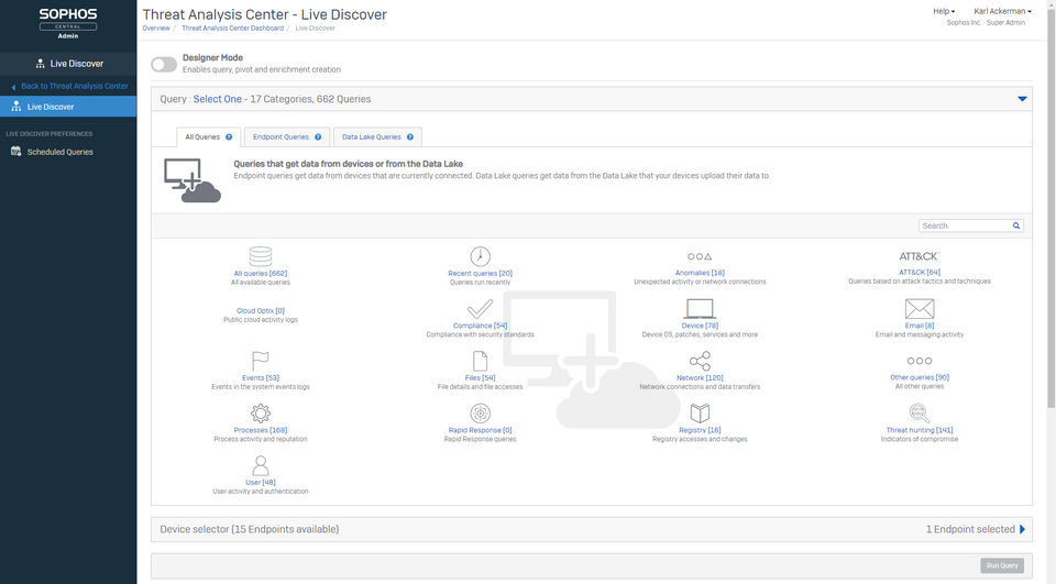- Deep data analytics Synchronized cross-product telemetry SophosLabs Intelix threat intelligence Cross-product investigations