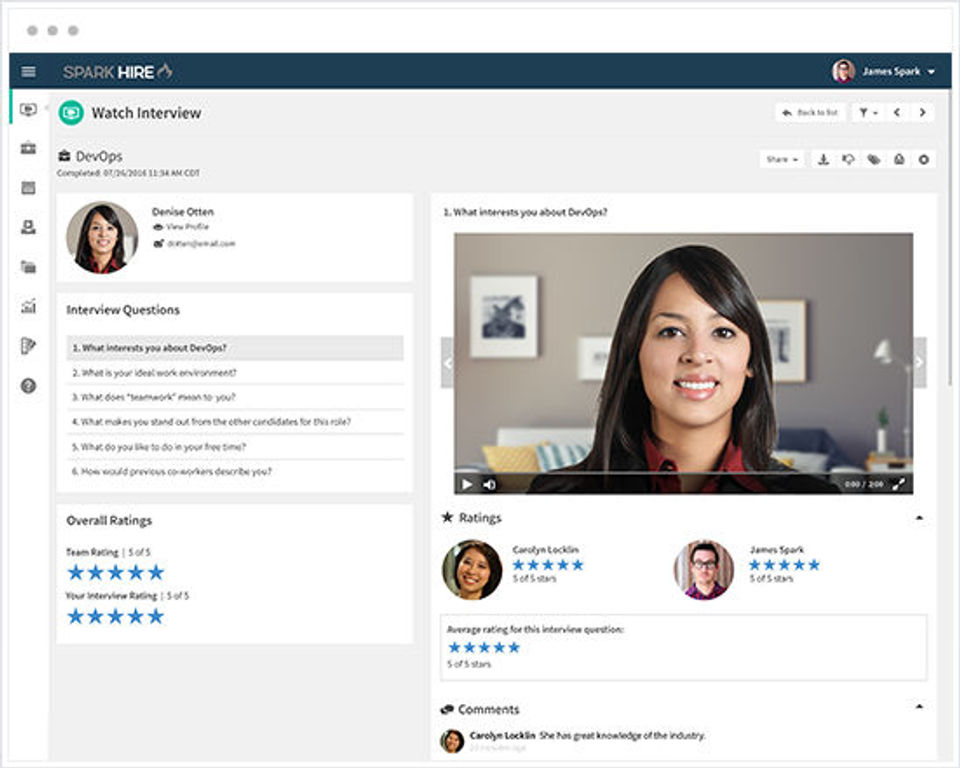 Spark Hire is the Video Interviewing Software used for the below functionalities.