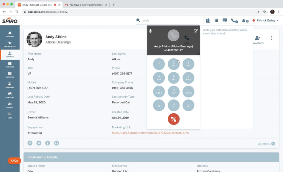 Spiro is great. I used it for the last company I worked for. It's a great tool for sales people and it also.sets reminders.and appointments so no sale is left behind.