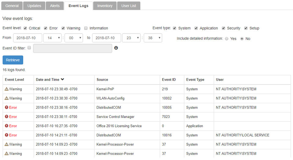 - Event Logs