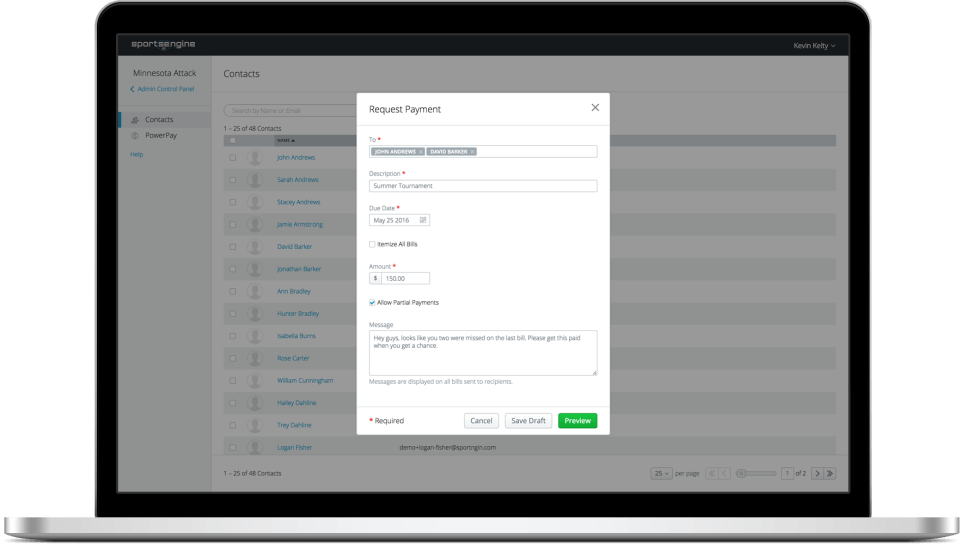 SportsEngine is the Club management software used for the below functionalities.