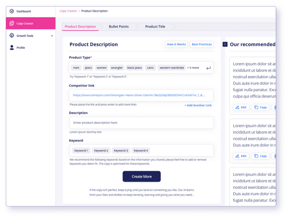 - Keyword optimized Product Descriptions