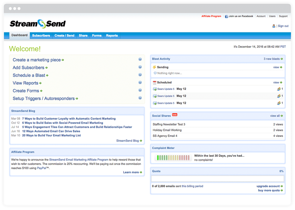 StreamSend is the Email Marketing Software used for the below functionalities.