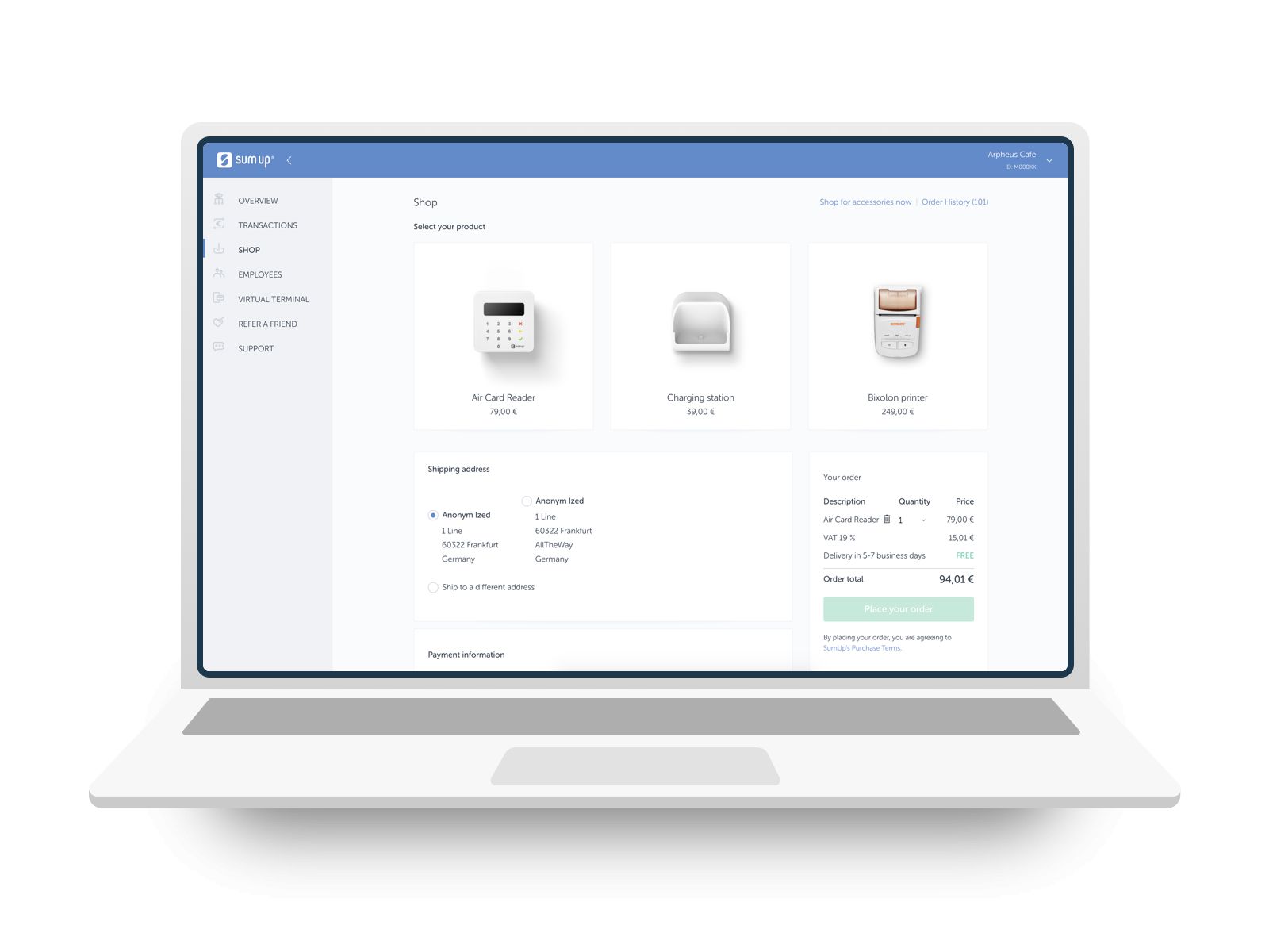 - Create a SumUp account through the official website.