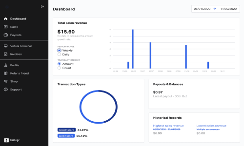 - Access to the SumUp account dashboard for transaction tracking