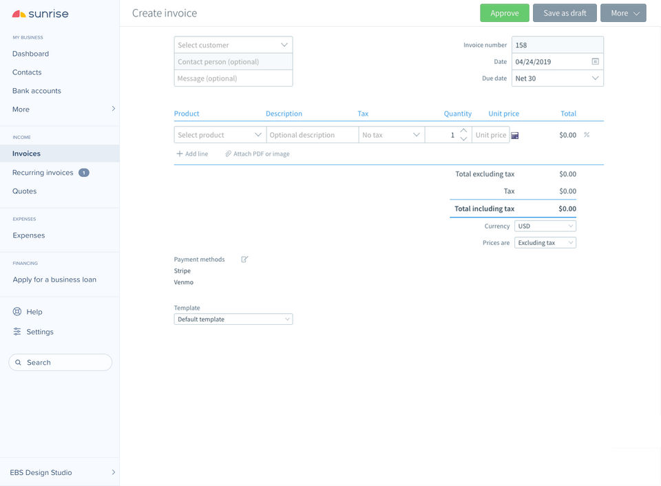 Pretty simple to generate an invoice, UX is nice.