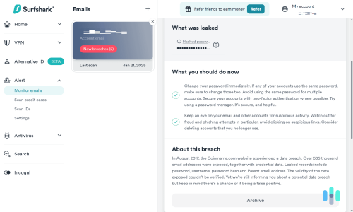 Surfshark goes beyond traditional VPN services by offering privacy-focused tools such as Surfshark Search, an ad-free private search engine, and Surfshark Alert, which notifies users of potential data breaches.