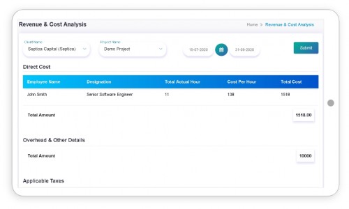 - Time sheet and cost analysis