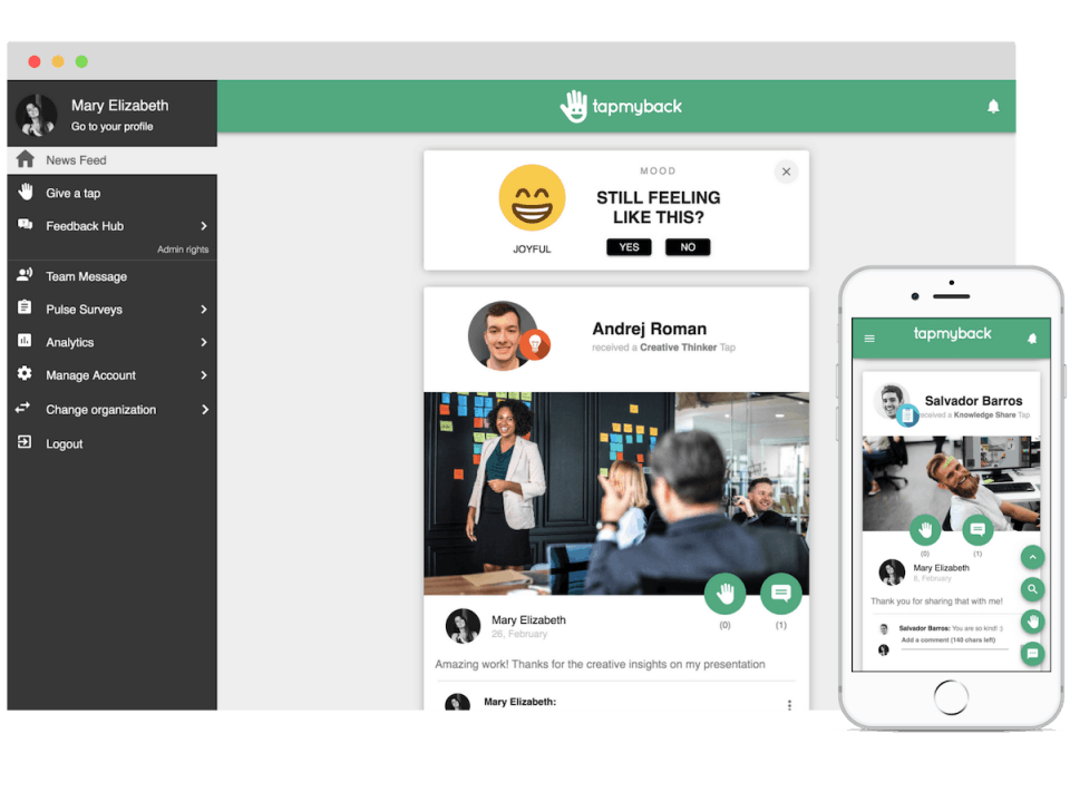 Tap My Back offers a comprehensive feature set tailored for modern work environments: