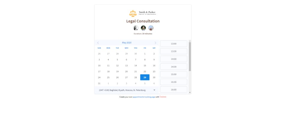 Appointment Scheduling: Shareable calendar links, custom durations, and branding