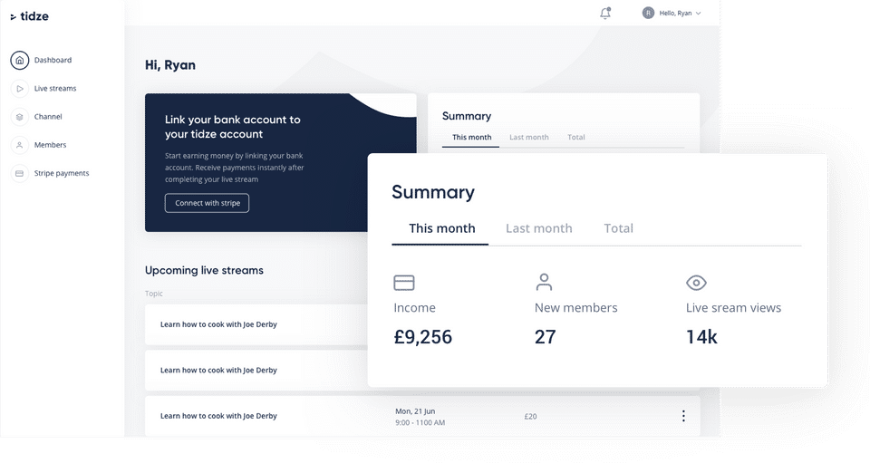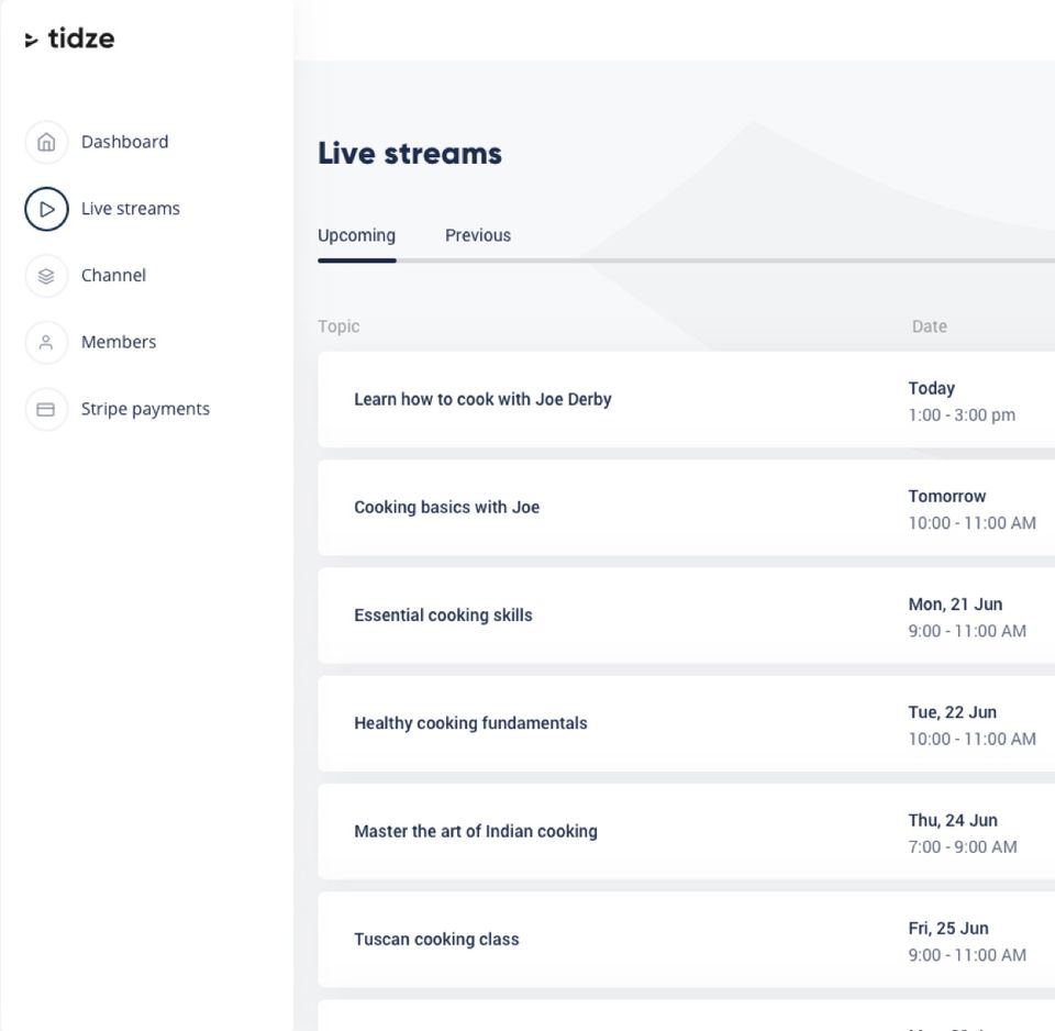 Tidze is the Live Streaming Software & Platform used for the below functionalities.