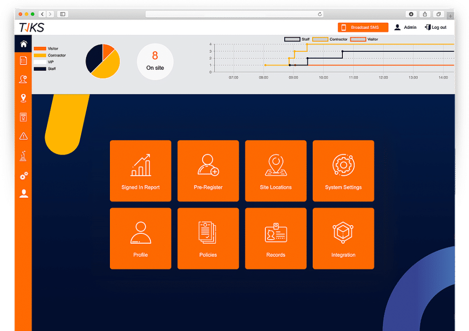 - Alert host of visitor or contractor arrival via email and SMS