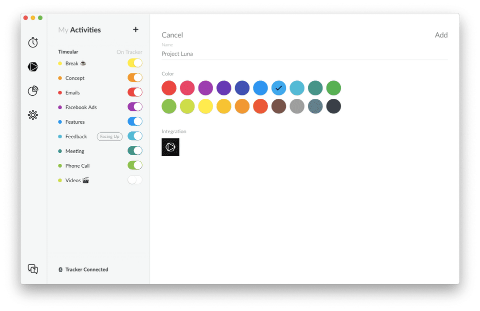 What I like best is how easy it is to use. I've tried other software timers before, time trackers on my phone, but I stop using them in a matter of days, usually in hours. It requires too much attention to keep in mind that I have a tracker running, switch to the application or open my phone and change it. With the Timeular, I just have to get close and change the faces, and since the program is on my desk in front of my monitor, I don't forget to do it. In the PC version, the software responds wonders when I change from one face to another. It is also very easy to write a couple of descriptive words in each block recorded to remind me of what I was doing during that time.