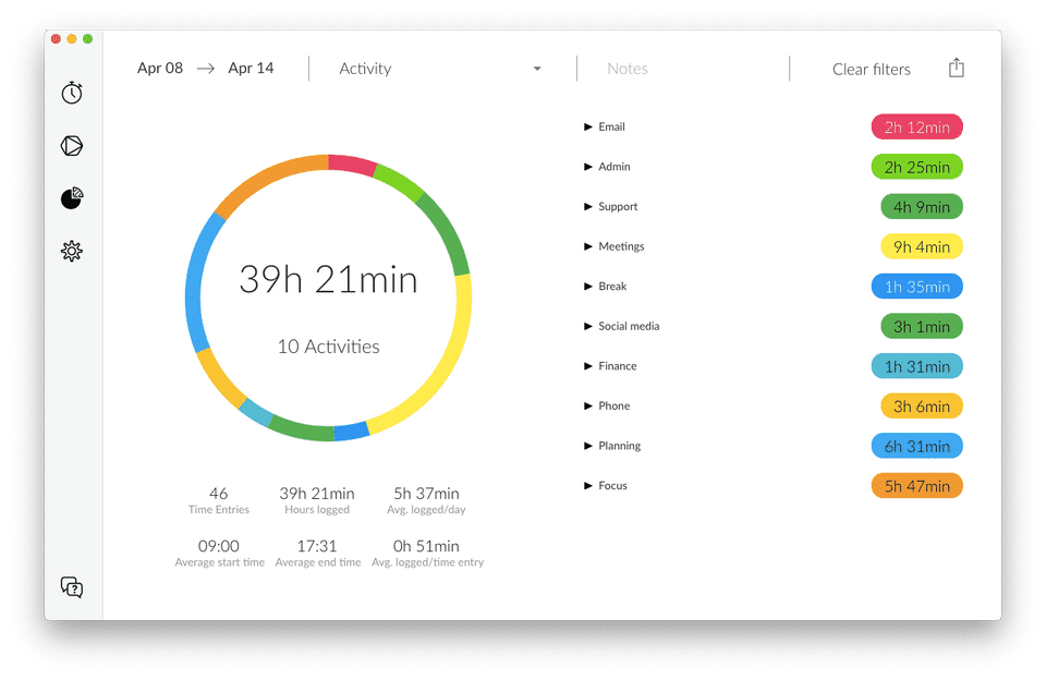 - Visualize your time with charts