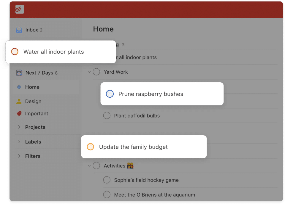 Todoist is the Remote Work Software used for the below functionalities.