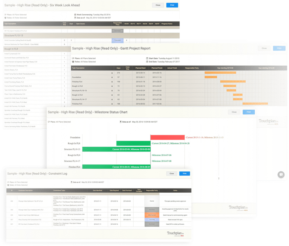 Touchplan is the Construction Management Software used for the below functionalities.