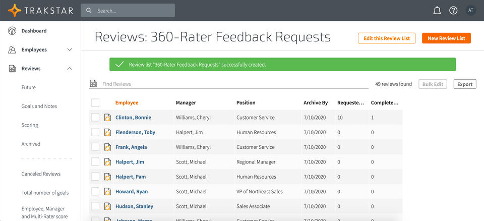 Trakstar has really improved our performance management process. I probably have not used it to its full capacity and am sometimes confused about how to use it, but they offer great support videos as well as personalized support. When we first adopted it, I accidentally deleted some data and they were able to help me recover it. Overall it's a great database and has tons of flexibility.