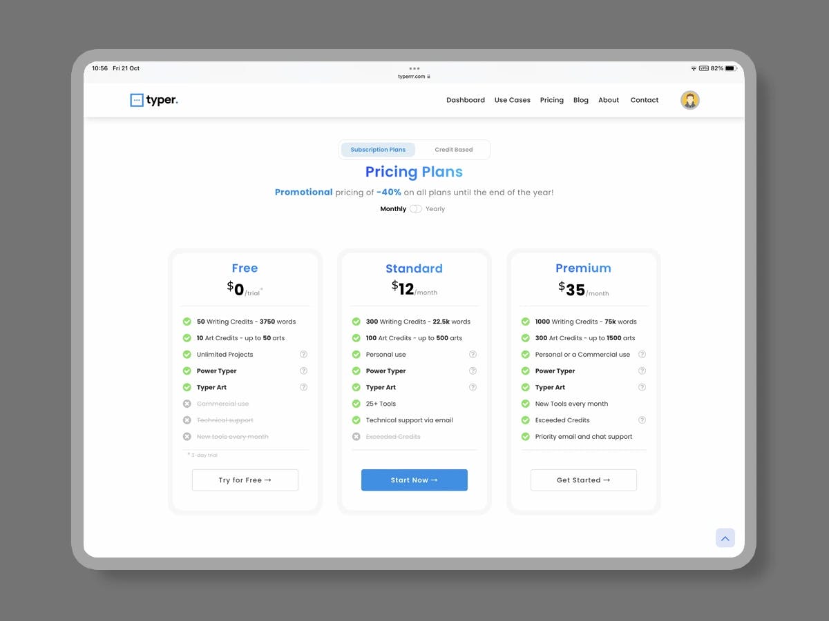 Typer AI has 1 plans,