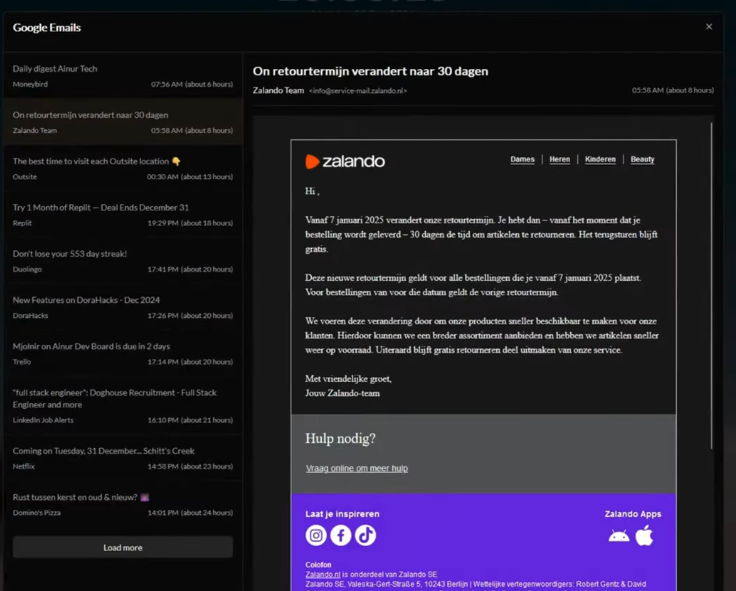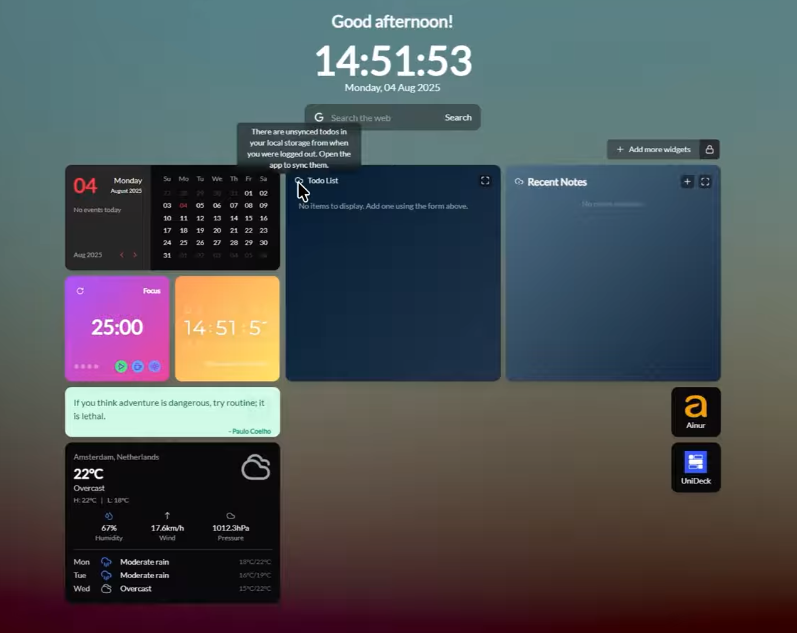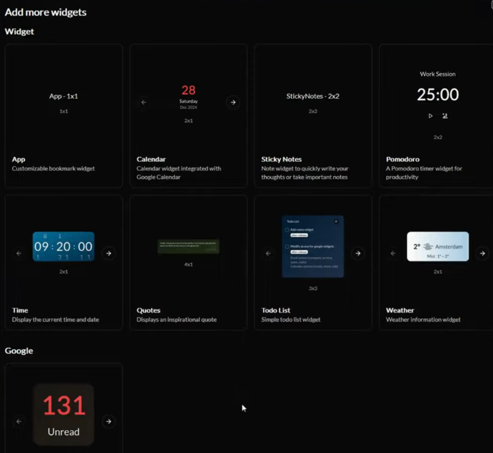 - Core widgets like Emails Calendar Tasks and etc.