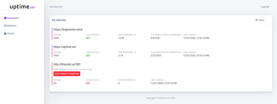 UpTime.onl is the Website Monitoring Software used for the below functionalities.