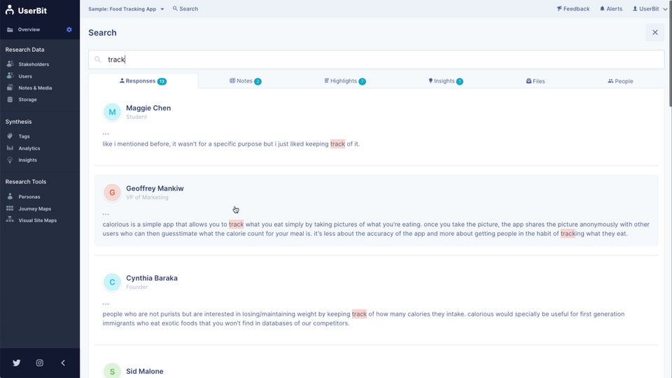 UserBit is the UX Software used for the below functionalities.