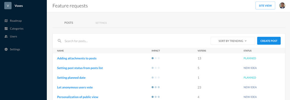 Voxes is the Product Management Software used for the below functionalities.
