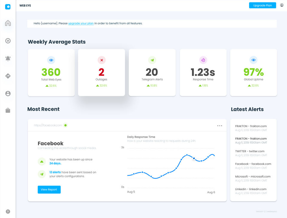 WRITE A REVIEWBeing a freelancer and taking care of client websites is one thing, but making sure they stay online is another. That's why I use Webeye to track my websites, and also receive alerts on the mobile app directly if anything goes wrong. I know about the website and slack integrations and others, but I really enjoy the mobile app alerts more than the rest. I am looking forward although to the other features of the product, which are expected to include content change alerts, and other alerts like hacked or cloud flare situation alert. These will be useful for me.
