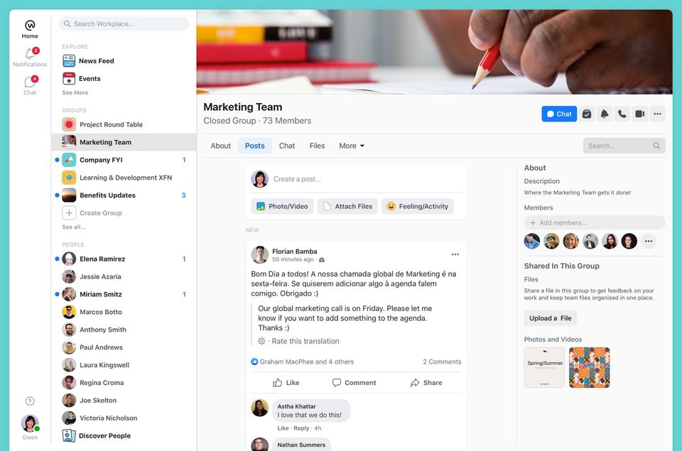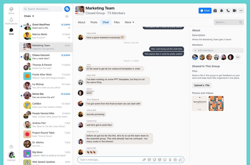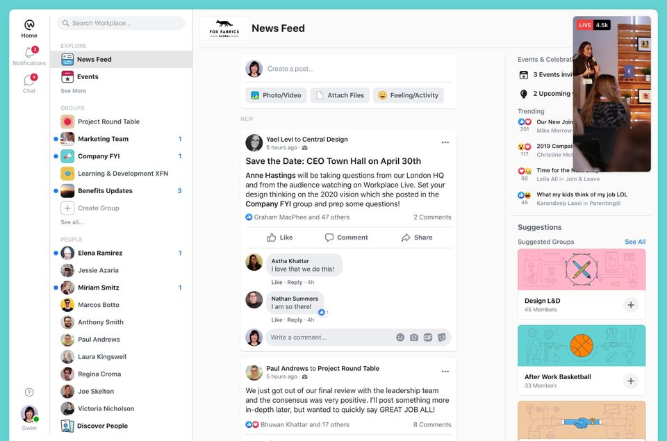I don't use Workplace much. It's easy to use if you use Facebook.