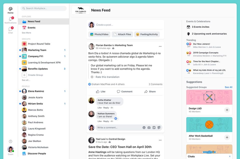 Workplace is the Collaboration Tool used for the below functionalities.