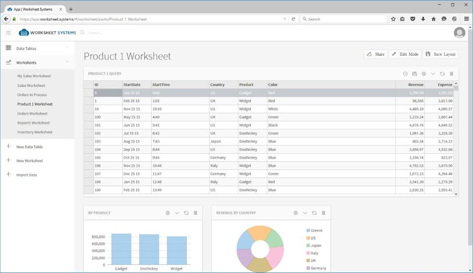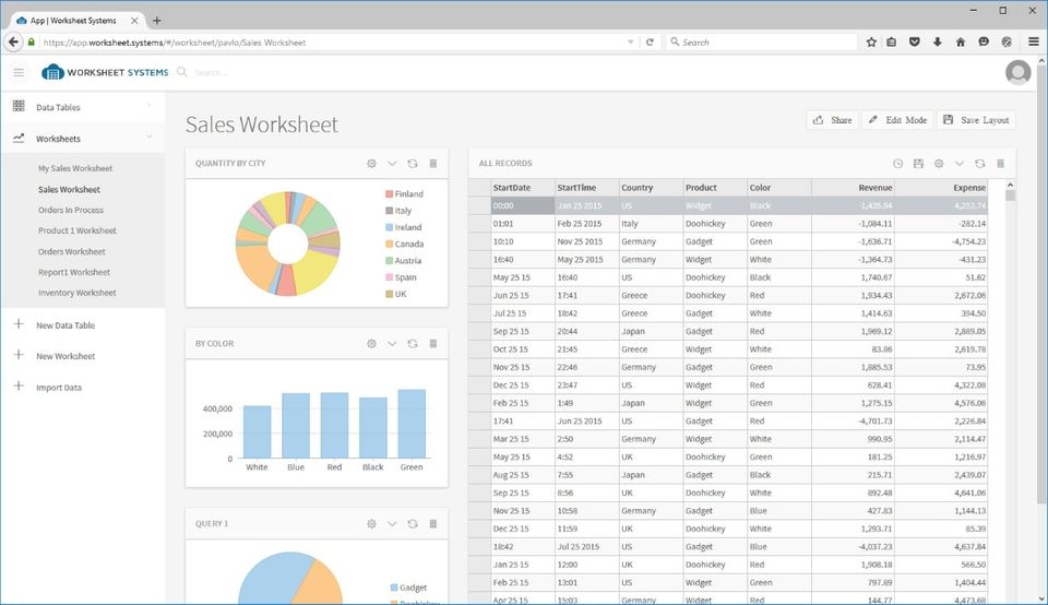 Worksheet Systems is the Database Management Software used for the below functionalities.