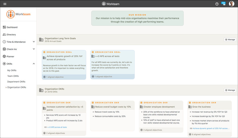 Workteam is the OKR Software used for the below functionalities.
